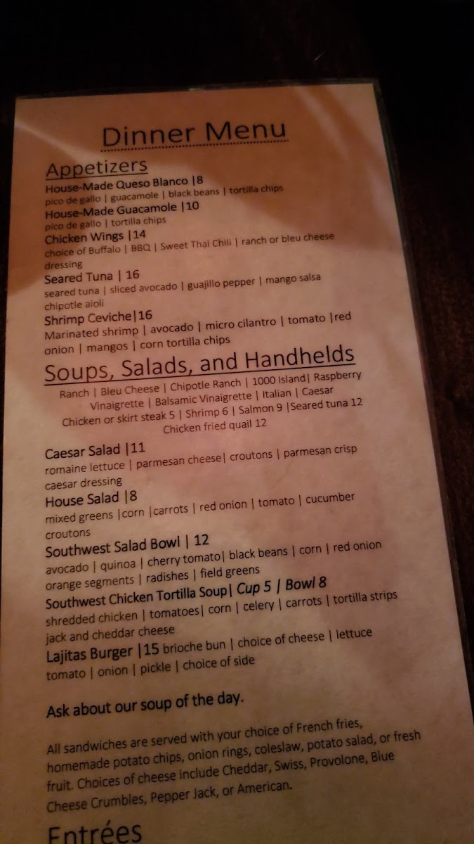 “ Note: after 5 PM, patrons to the saloon and restaurant are limited to resort customers only. We squeaked in right at that time, and our waitstaff, Lauren, was amazing. We enjoyed the Lajitas pizza (a healthy 12” supreme pie that was plenty for two if not ravenous) plus the loaded fries: queso, bacon, green onion. Both were piping hot and filling; we had leftovers to take with us! Cocktails were on the spendy side (15-21) but tasty and well-poured. ”
